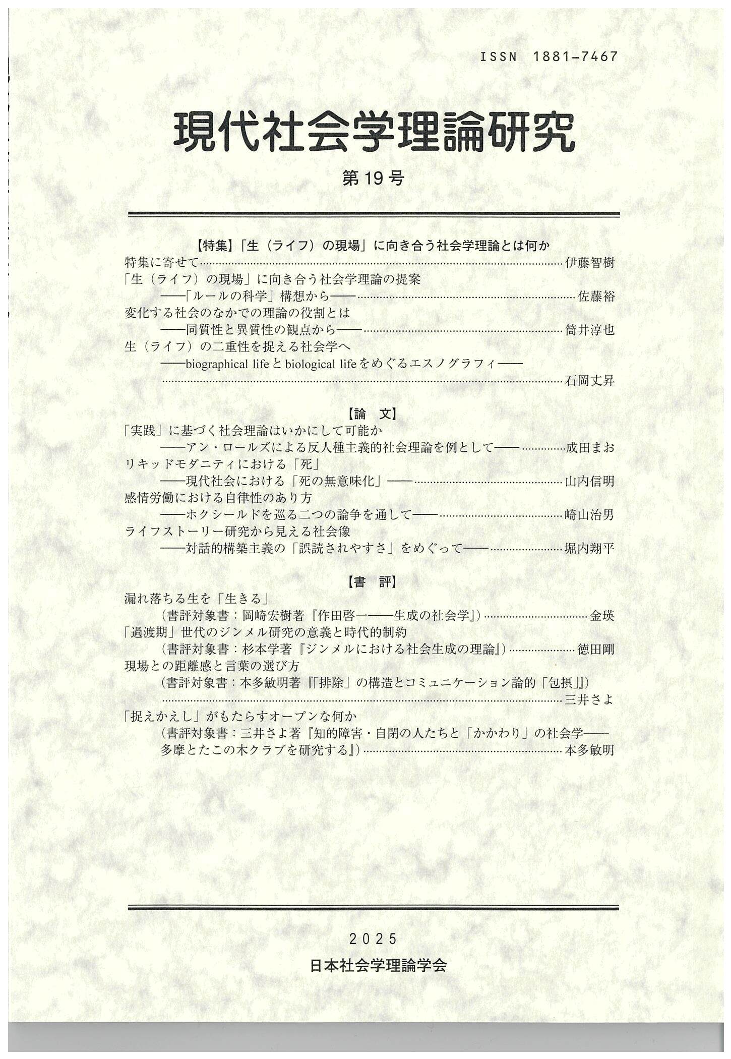 現代社会学理論研究 第19号: 【特集】「生(ライフ)の現場」に向き合う社会学理論とは何か